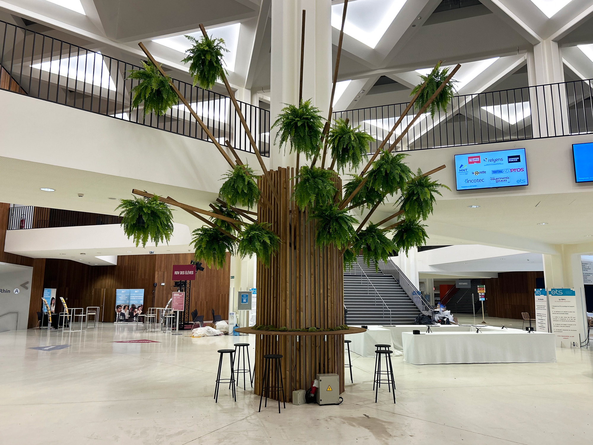 Création d’un arbre contemporain XXL permettant de fédérer les congressistes autour d’un espace de travail symbolique.