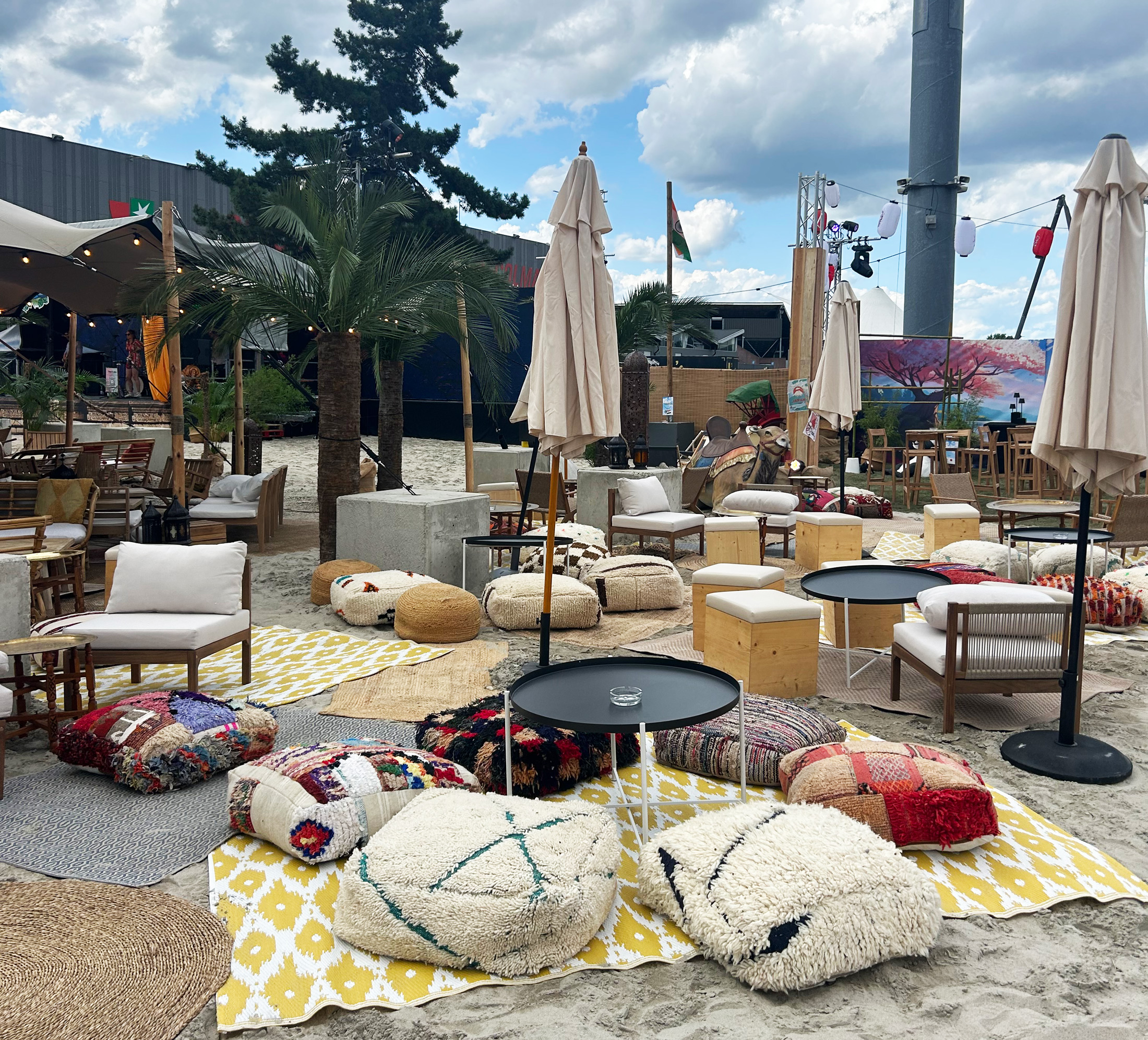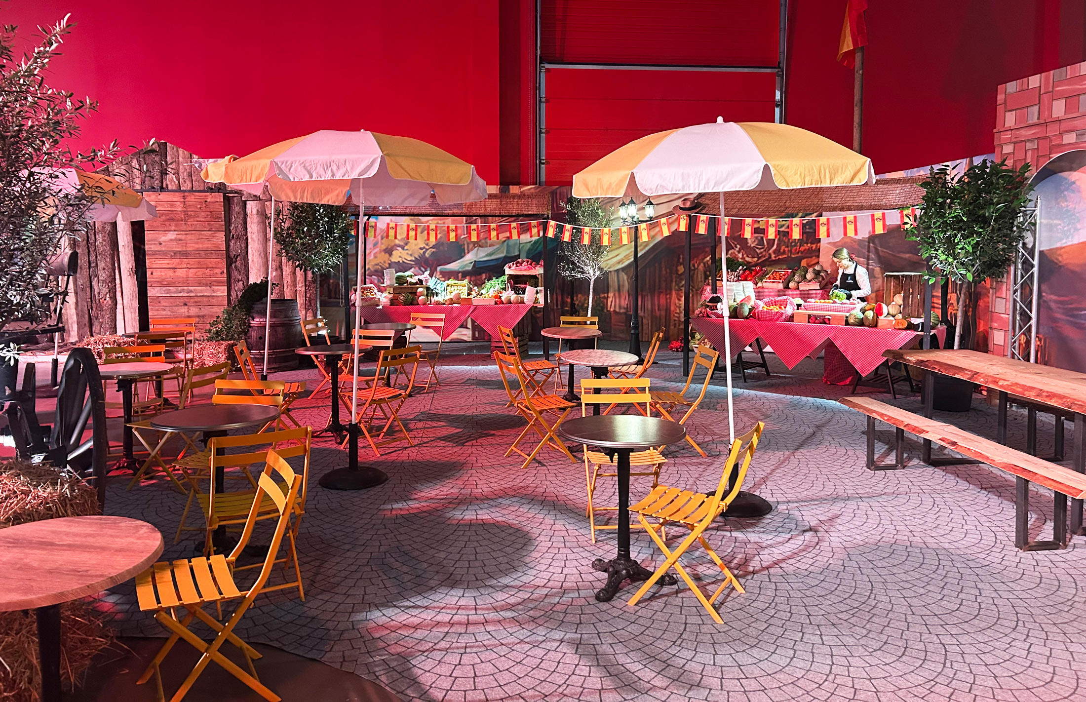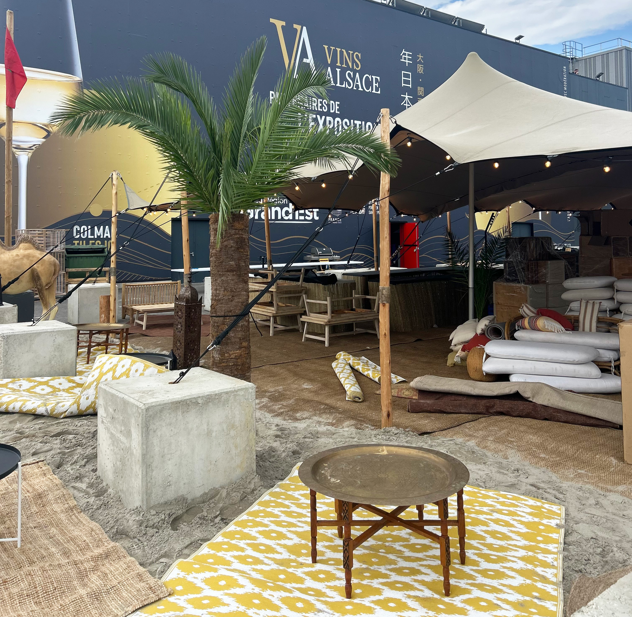 Décor sur la thématique d’un tour du monde. Dans le cadre d’une fête annuelle, les collaborateurs déambulent à travers plusieurs univers pays pour une soirée festive et immersive