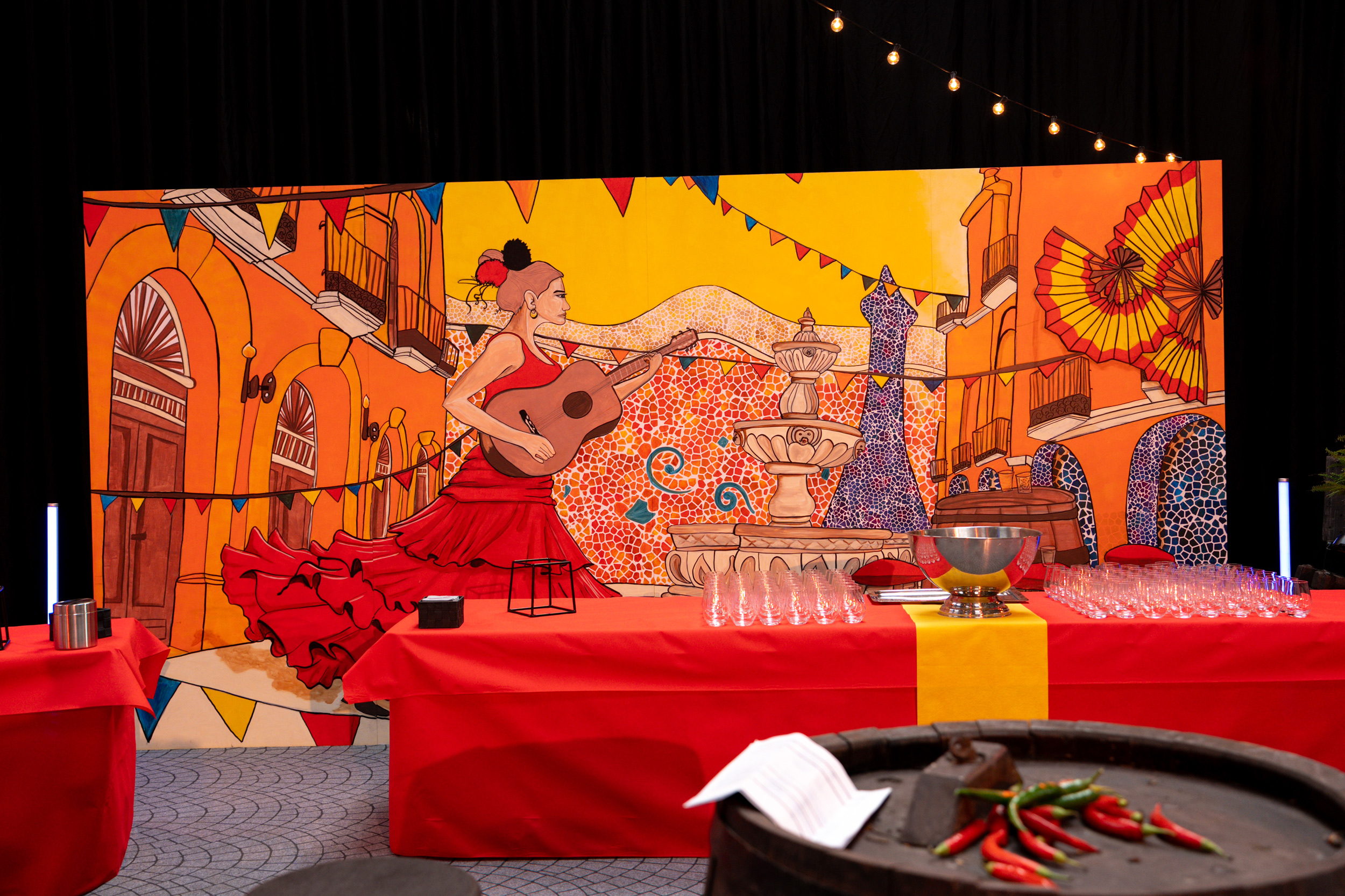 Décor autour de 4 pays européens pour l’inauguration de l’agrandissement du site DACHER Strasbourg. Angleterre, Allemagne, Italie et Espagne sont à l’honneur.