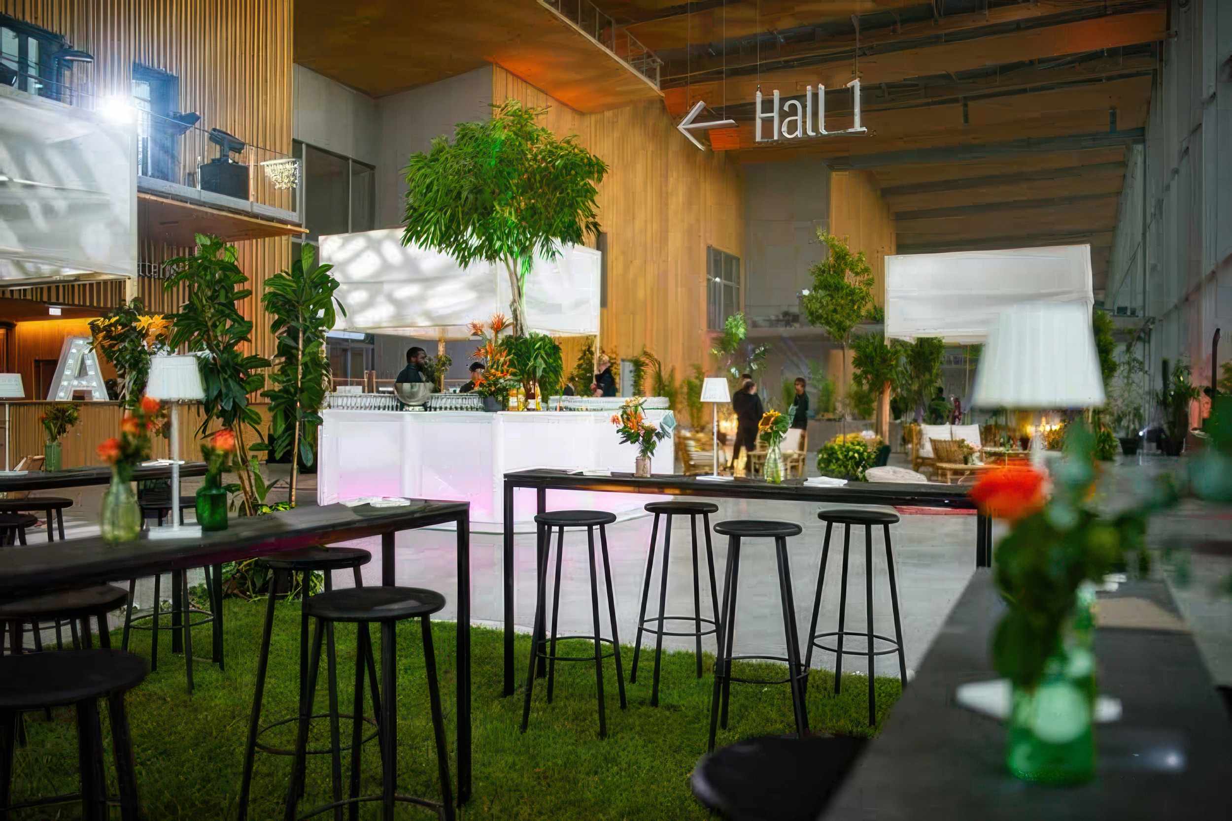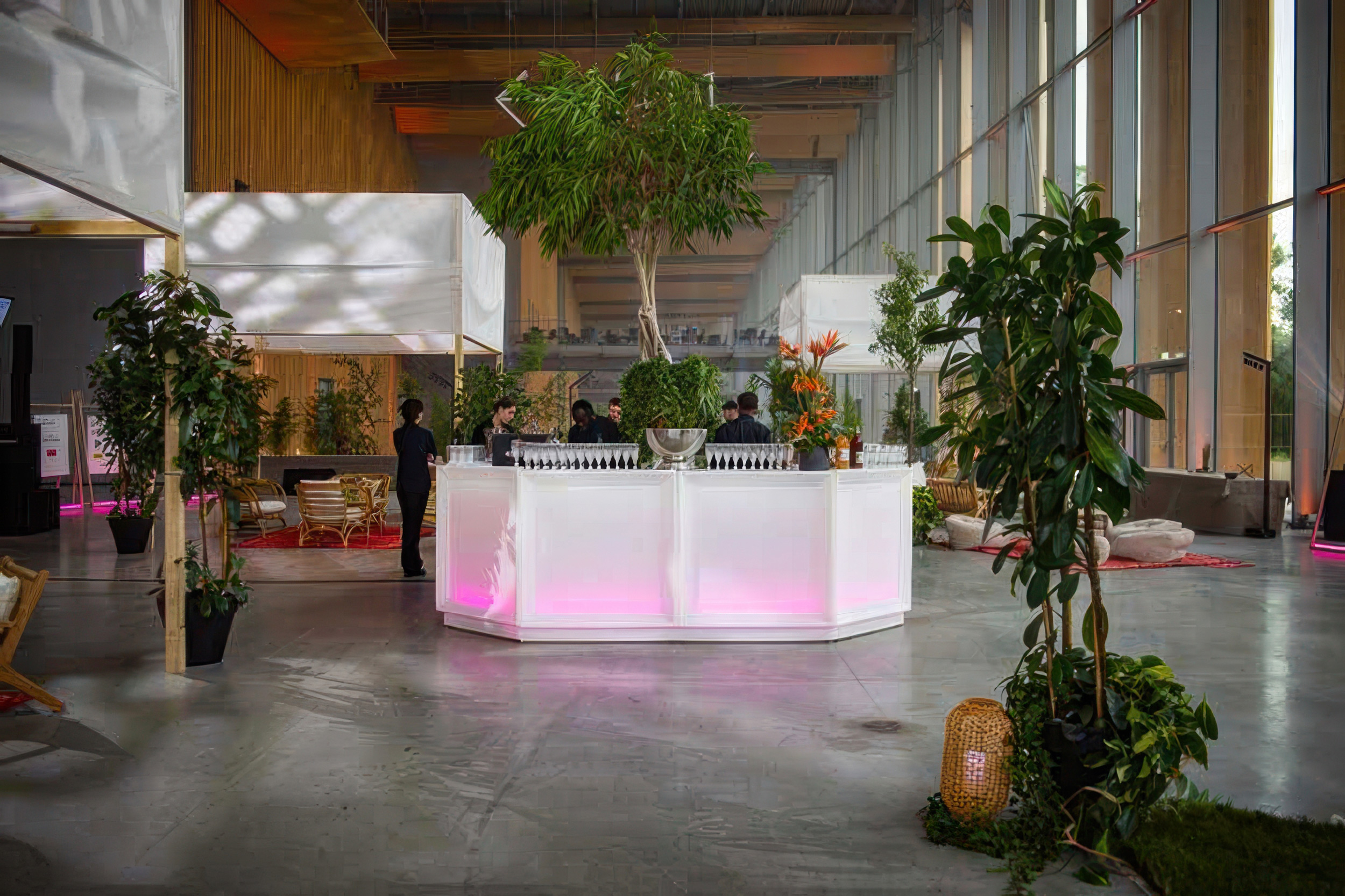 Soirée de gala dans la galerie du parc exposition de Strasbourg. Majusteux, cet espace a été agencé pour une soirée intime et festive.